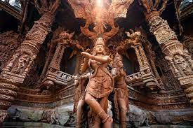 真理寺是芭堤雅唯一的柚木建筑,是一座真正令人敬畏的哲学真理纪念碑。它讲述了宗教、哲学和艺术在人类发展中的重要性。以及在追求物质主义的过程中忽视道德和精神满足的愚蠢行为。总的来说,这个建筑群是人类努力和技能的美丽而谦逊的展示。尤其是当您意识到所使用的木材均未经过化学处理或保护时。意思是当一个部分完成时另一部分经常会在炎热和潮湿的条件下损坏,必须更换。
